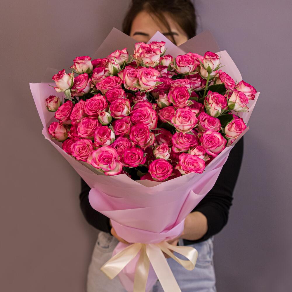 Роскошный букет «Розовый бум» из кустовых роз — это взрыв нежности и романтики! Пышные розовые бутоны в элегантной упаковке создают праздничное настроение. Идеальный подарок для особенных моментов. Купить цветы с доставкой в Альметьевске от магазина Афло.