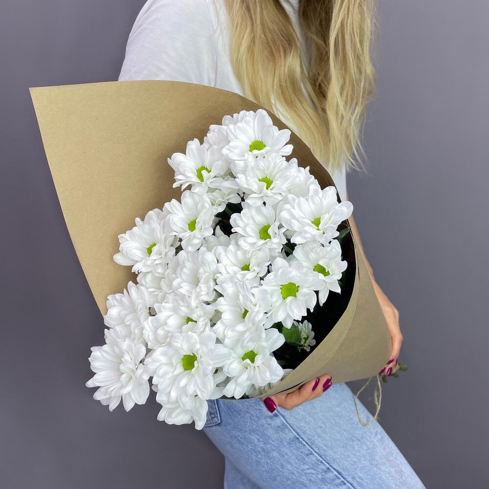 Букет «21 ромашка» – нежные белые кустовые хризантемы в натуральном стиле