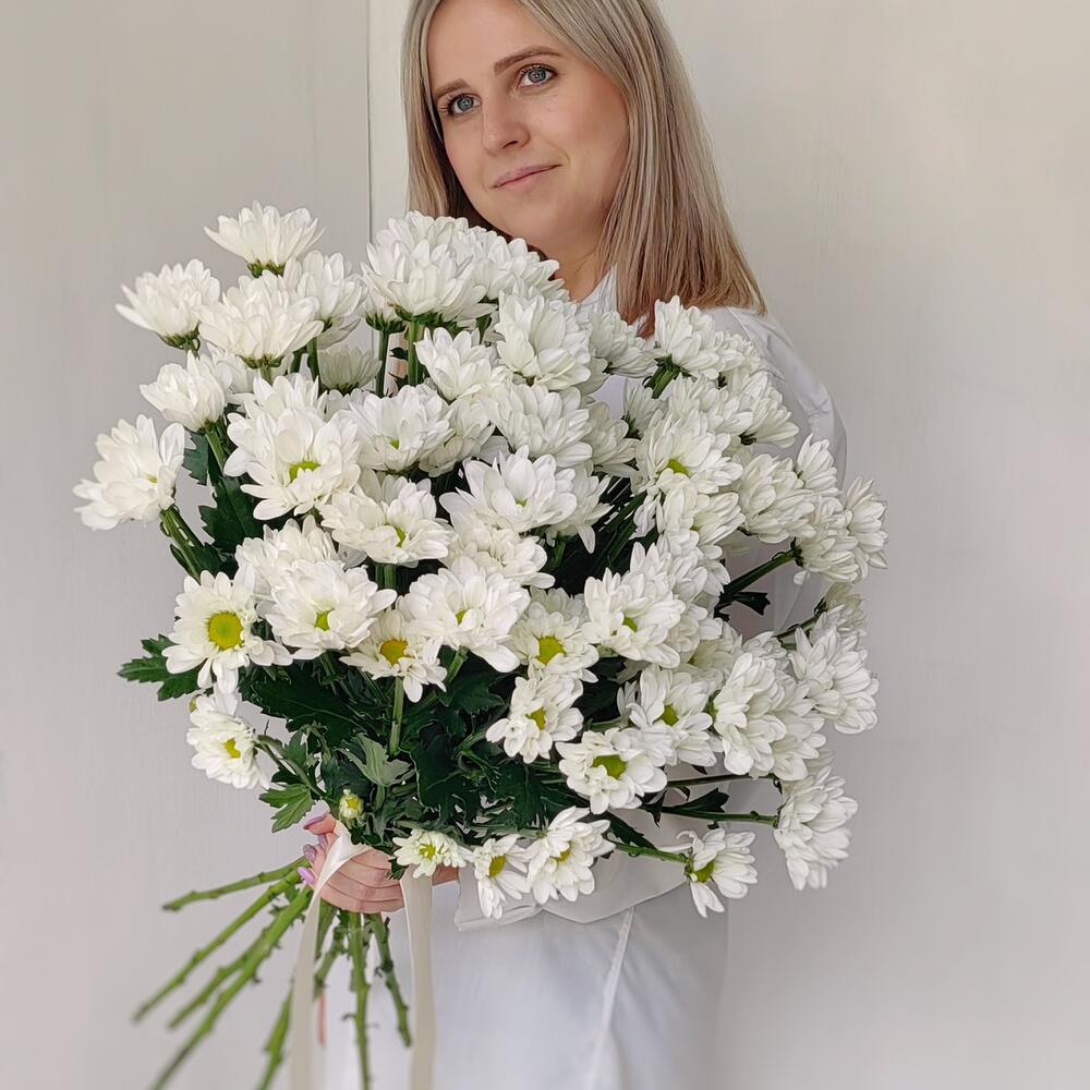 Букет «Весеннее настроение» – свежесть белых хризантем