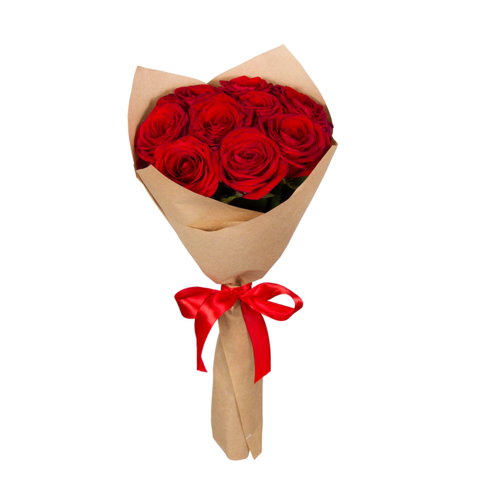 Букет из 7 красных роз в крафте – страсть в стильной упаковке